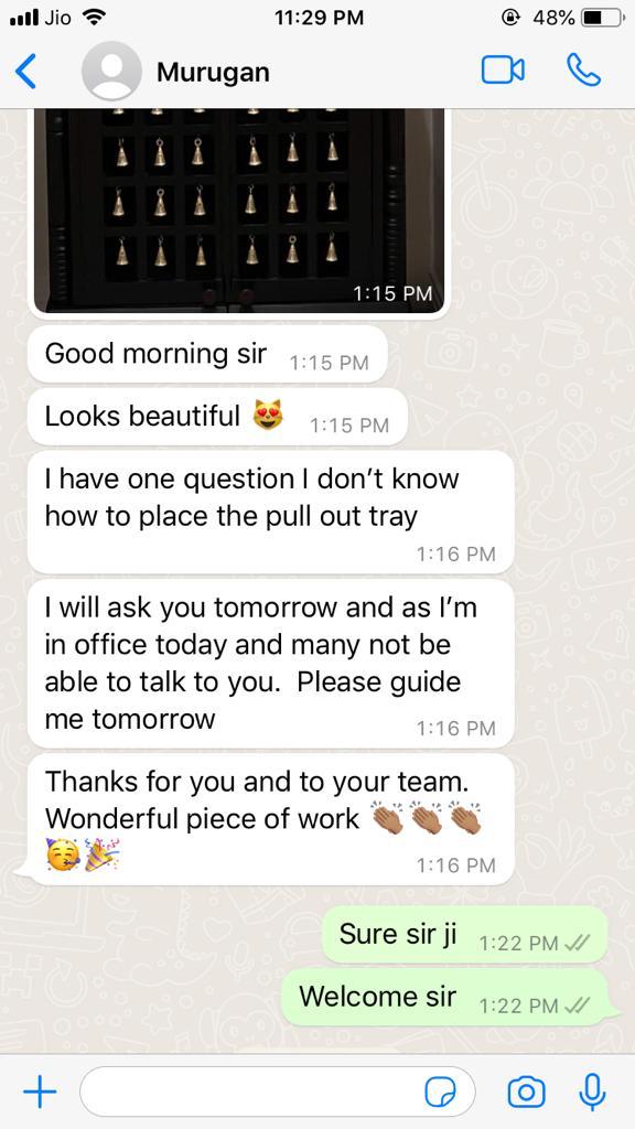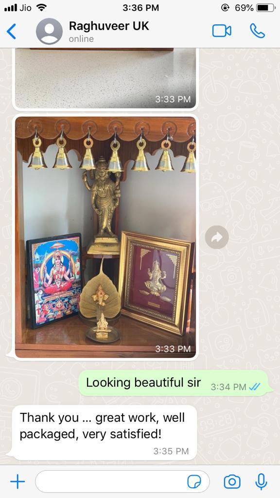 Handmade wooden mandir cabinet in UK with bells 30x15x54 inches